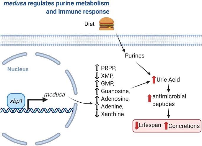 title = {A fly GWAS for purine metabolites identifies human FAM214 homolog medusa, which acts in a conserved manner to enhance hyperuricemia-driven pathologies by modulating purine metabolism and the inflammatory response},
